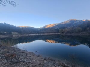 Η περιοχή γύρω από τη λίμνη είναι ιδανική για περπάτημα. Οι πεζοπόροι μπορούν να ακολουθήσουν τα μονοπάτια που περικυκλώνουν τη λίμνη, απολαμβάνοντας το καταπράσινο τοπίο και την ηρεμία της φύσης. Το τοπίο είναι πραγματικά εκπληκτικό, με πεύκα και έλατα να περιβάλλουν τη λίμνη, προσφέροντας άφθονες ευκαιρίες για φωτογραφίες. Η πεζοπορία εδώ είναι κατάλληλη για όλες τις ηλικίες και τα επίπεδα φυσικής κατάστασης.